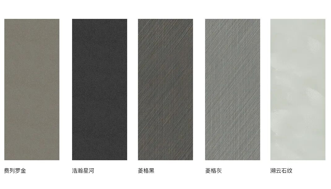 推出5款花色:费列罗金、浩瀚星河、菱格黑、菱格灰、溯云石纹